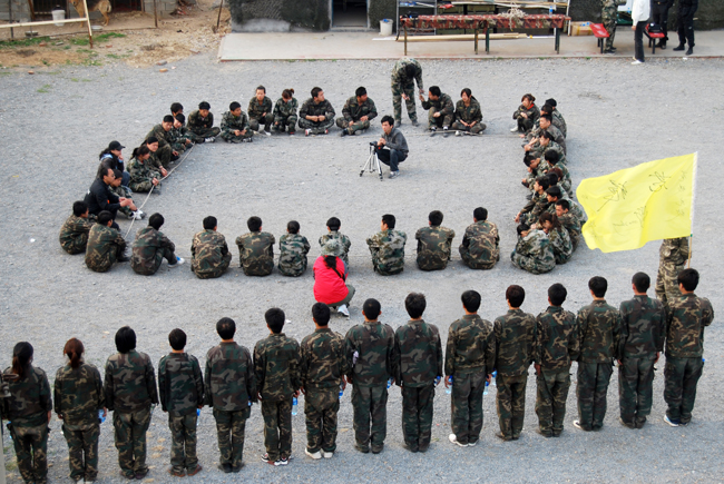上午8時(shí),簡(jiǎn)短的破冰活動(dòng)后,教練員對(duì)全天活動(dòng)作出詳細(xì)部署并提出嚴(yán)格要求。全體學(xué)員迅速組建“蒼狼”、“勇者”、“亮劍”和“蟑螂”四個(gè)團(tuán)隊(duì)并快速融入各自的團(tuán)隊(duì),高舉團(tuán)隊(duì)旗幟、高呼團(tuán)隊(duì)口號(hào)、高唱團(tuán)隊(duì)隊(duì)歌,大家不畏困難、齊心協(xié)力,圓滿(mǎn)的完成了全天拓展項(xiàng)目。