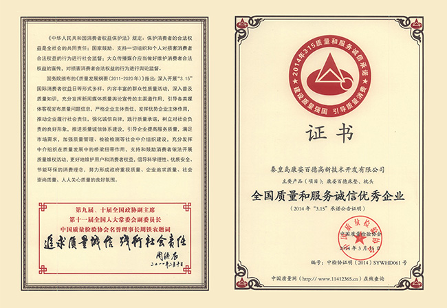 在3.15消費者權(quán)益日當天,康姿百德公司被中國質(zhì)量檢驗協(xié)會評為“全國質(zhì)量和服務誠信優(yōu)秀企業(yè)”,這是日前公司在熱烈慶祝十周年華誕之際收到的又一份大禮。 中國質(zhì)量檢驗協(xié)會是全國質(zhì)量檢驗機構(gòu)及質(zhì)量檢驗工作者、全國質(zhì)量監(jiān)督工作者組織的專業(yè)社團組織,歸國家質(zhì)檢總局主管,由第九屆、十屆全國政協(xié)副主席,第十一屆全國人大常委會副委員長周鐵農(nóng)任名譽理事長,是目前全國最高級別的質(zhì)量檢驗機構(gòu),具有權(quán)威性和專業(yè)性。康姿百德公司獲得這一榮譽,既是國家對公司產(chǎn)品的認可和肯定,也給公司注入了不斷做優(yōu)產(chǎn)品、做強企業(yè)的信心和動力,必將鼓舞全體員工以創(chuàng)新的精神和務實的作風無私奉獻、奮勇向前。
