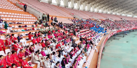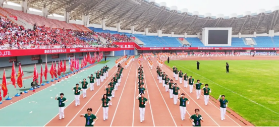 現(xiàn)場82支展演隊伍,浩浩蕩蕩、首尾相連,偌大的體育場瞬時變成一個律動的海洋。參賽隊員各個精神抖擻、熱情高漲,踏著康姿百德健身操音樂節(jié)拍,整齊劃一地舞動起來,贏得了全場觀眾的陣陣掌聲。