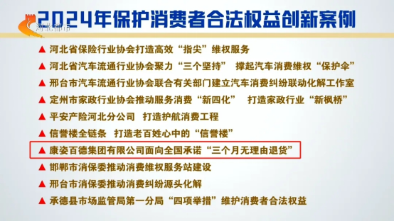 2025年3月,“三個月無理由退貨”成功入選2024年保護(hù)消費(fèi)者合法權(quán)益十大創(chuàng)新案例,并被河北省消費(fèi)者保護(hù)委員會作為典范,向全社會推廣。